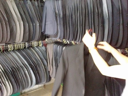 Tất nhiên, với những loại vải rẻ tiền, dựng áo sẽ rất bắt mắt nhưng mặc một thời gian sẽ bị sờn, giặt không khéo, cổ và tap dù được ép mếch cẩn thận cũng sẽ bị đổ nên dáng không được chuẩn. Đây lại là thứ hàng cho lãi "khủng" vô cùng. Đặc biệt, các cửa hàng dọc các tuyến phố Hàng Ngang, Hàng Đào, Khâm Thiên... bán rất chạy thứ "hàng chợ" mà giá hàng hiệu này. Anh T. cắt nghĩa: "Nguyên liệu đầu vào khoảng 600.000 đồng/bộ kèm chi phí nhân công trung bình từ 300.000 - 350.000 đồng/bộ, kết hợp với các kiểu dáng thời thượng được cách điệu cho bắt mắt như dáng đuôi tôm dáng dài, tuxedo... đảm bảo hàng xuất ra đến đâu hết đến đó và chính là hàng hiệu luôn".